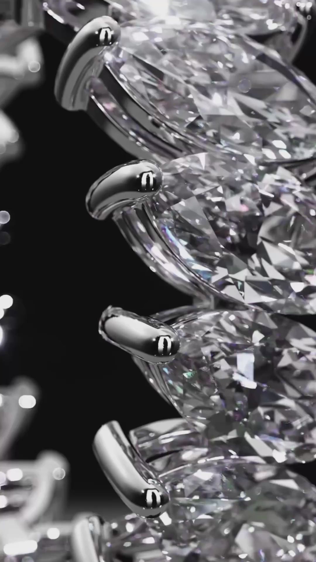 A true symbol of elegance, featuring a continuous circle of perfectly cut marquise stones that shimmer like royal leaves of light.